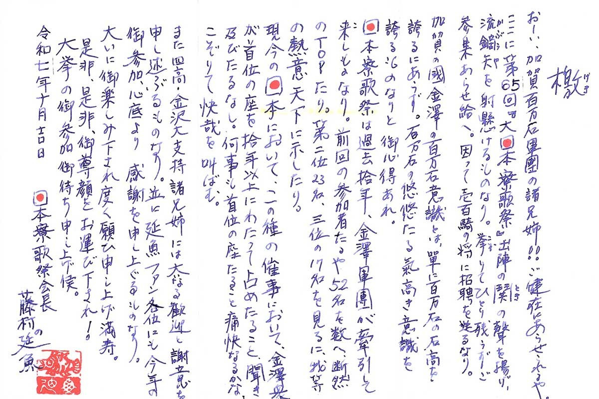 ③上2件と同じ宛先での、今回の皆様へのご連絡は、「日本寮歌祭」ご紹介・参加勧誘です。