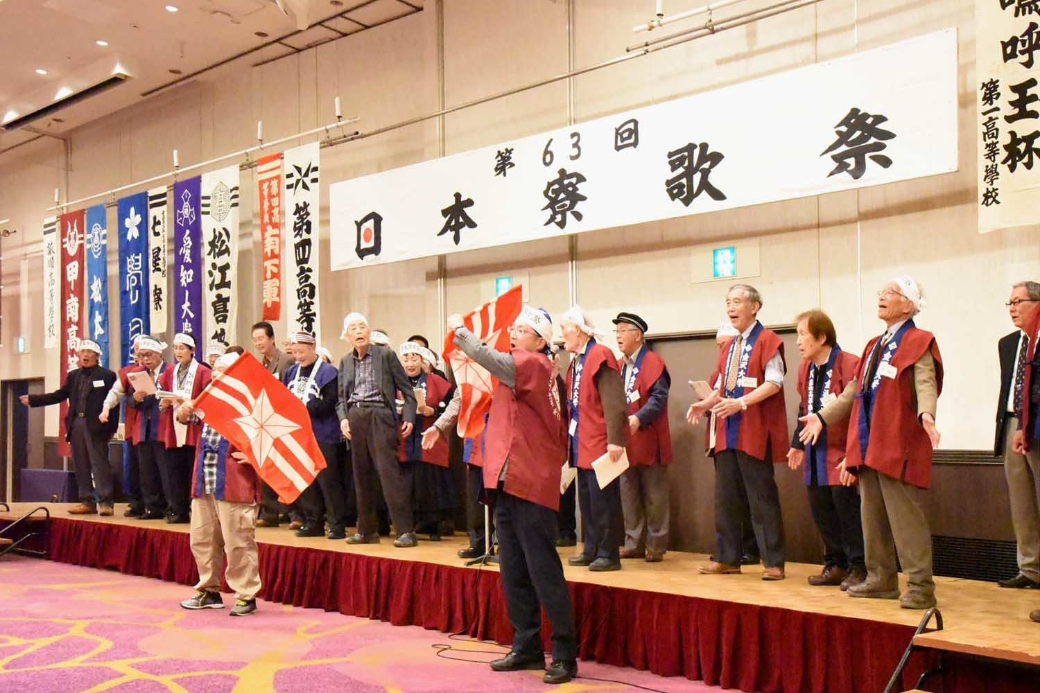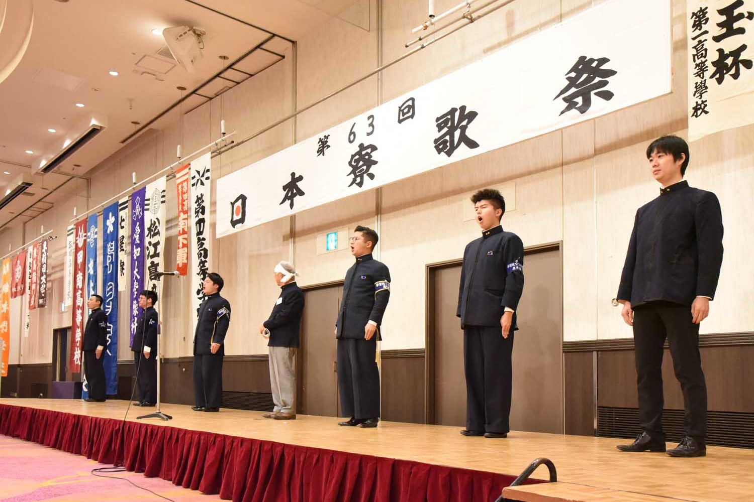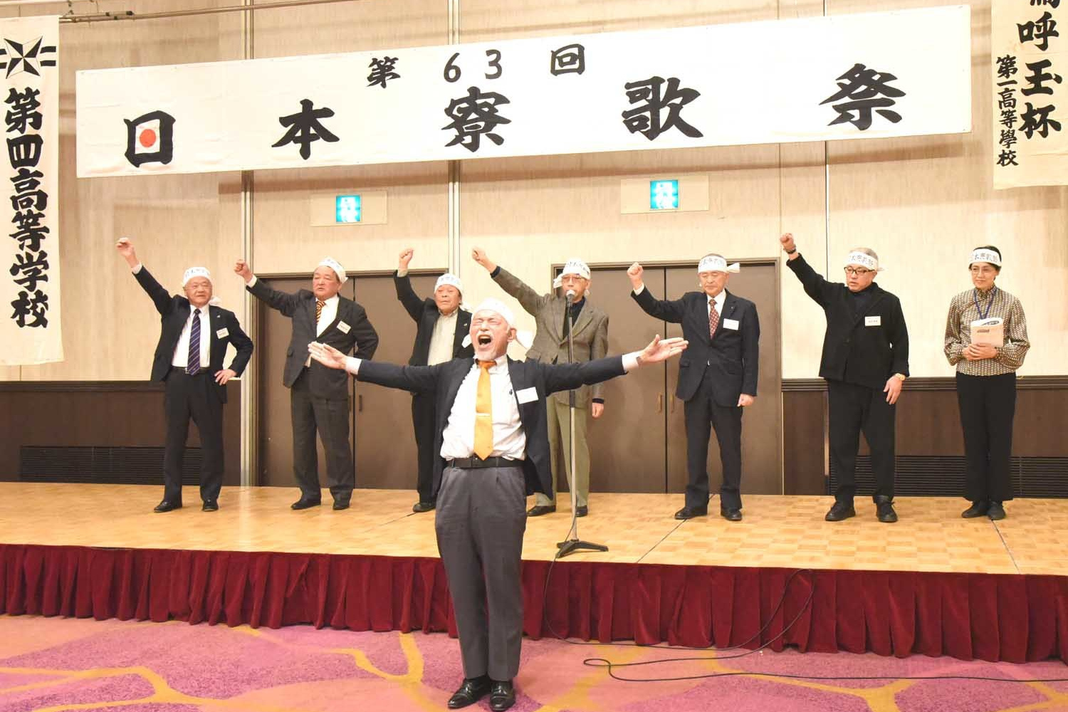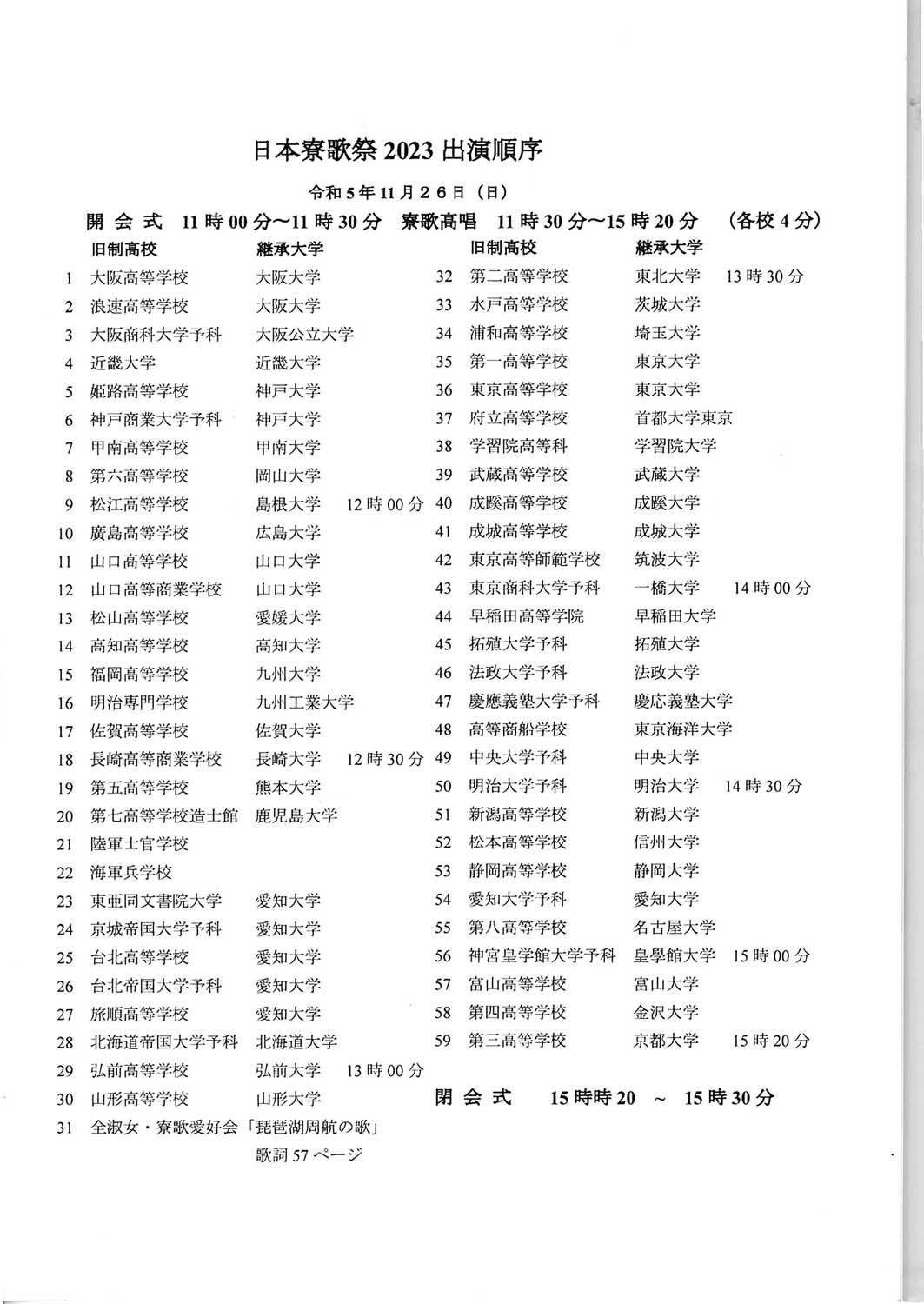 続けての添附が、参加各校の登壇・寮歌高唱の状況です。(参加各校名と参加者名簿は末尾に添附。)
