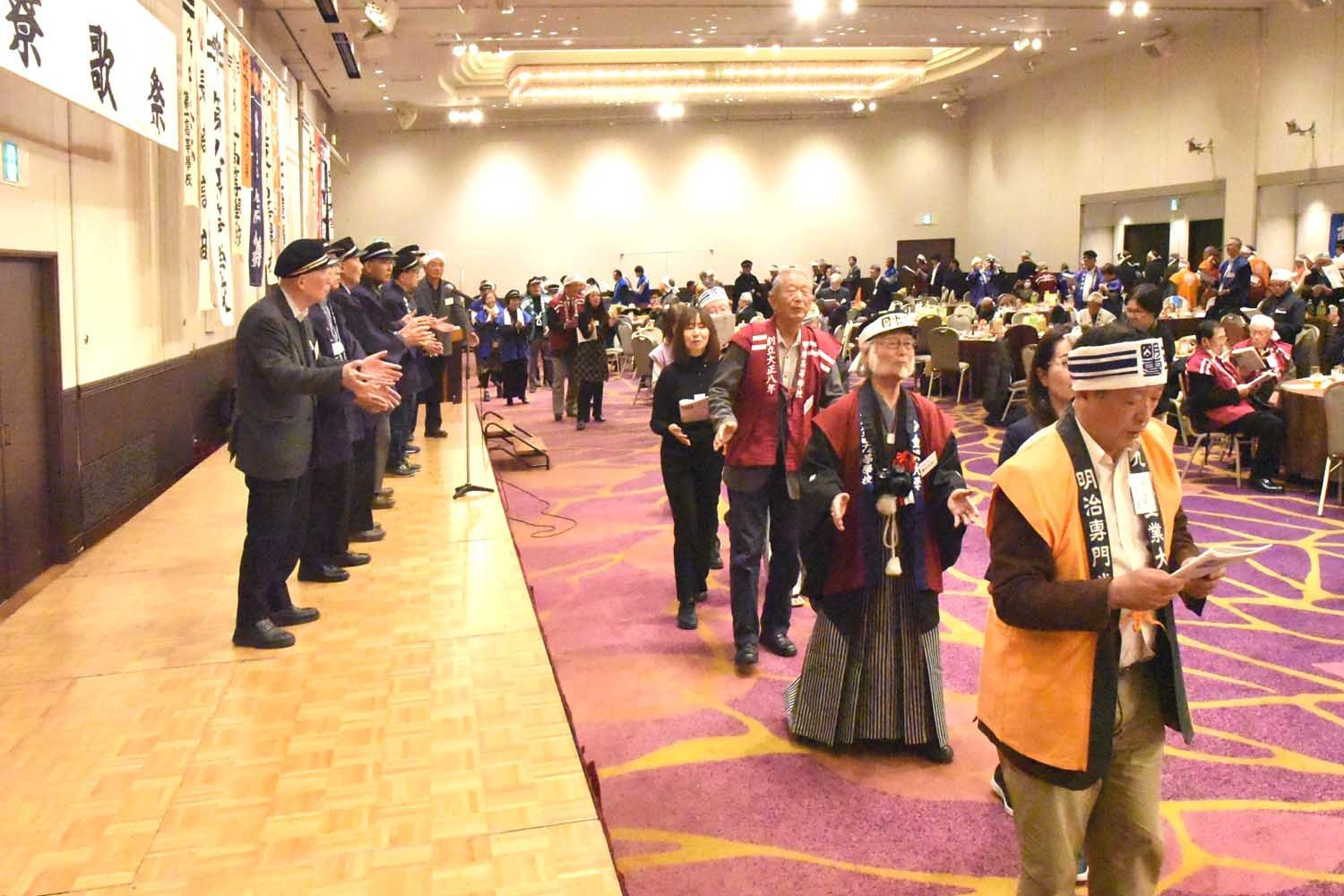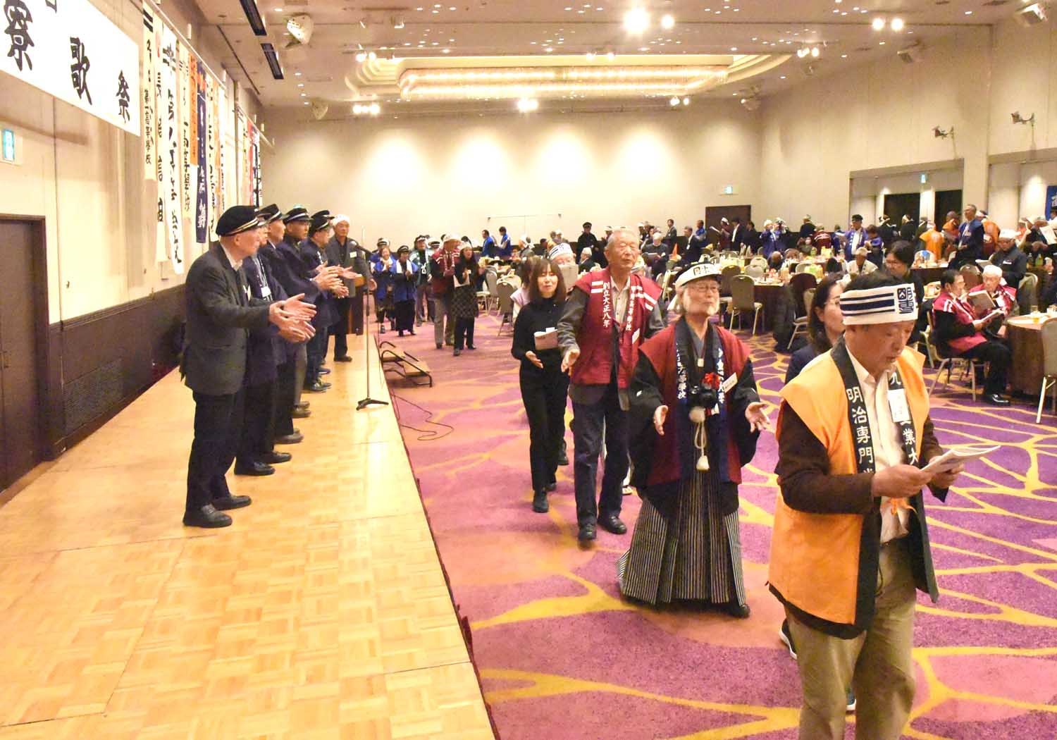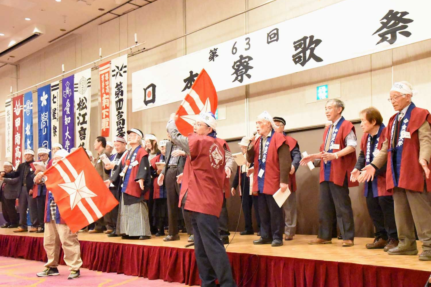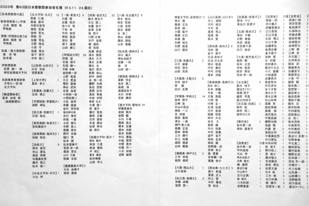 続けての添附が、参加各校の登壇・寮歌高唱の状況です。(参加各校名と参加者名簿は末尾に添附。)