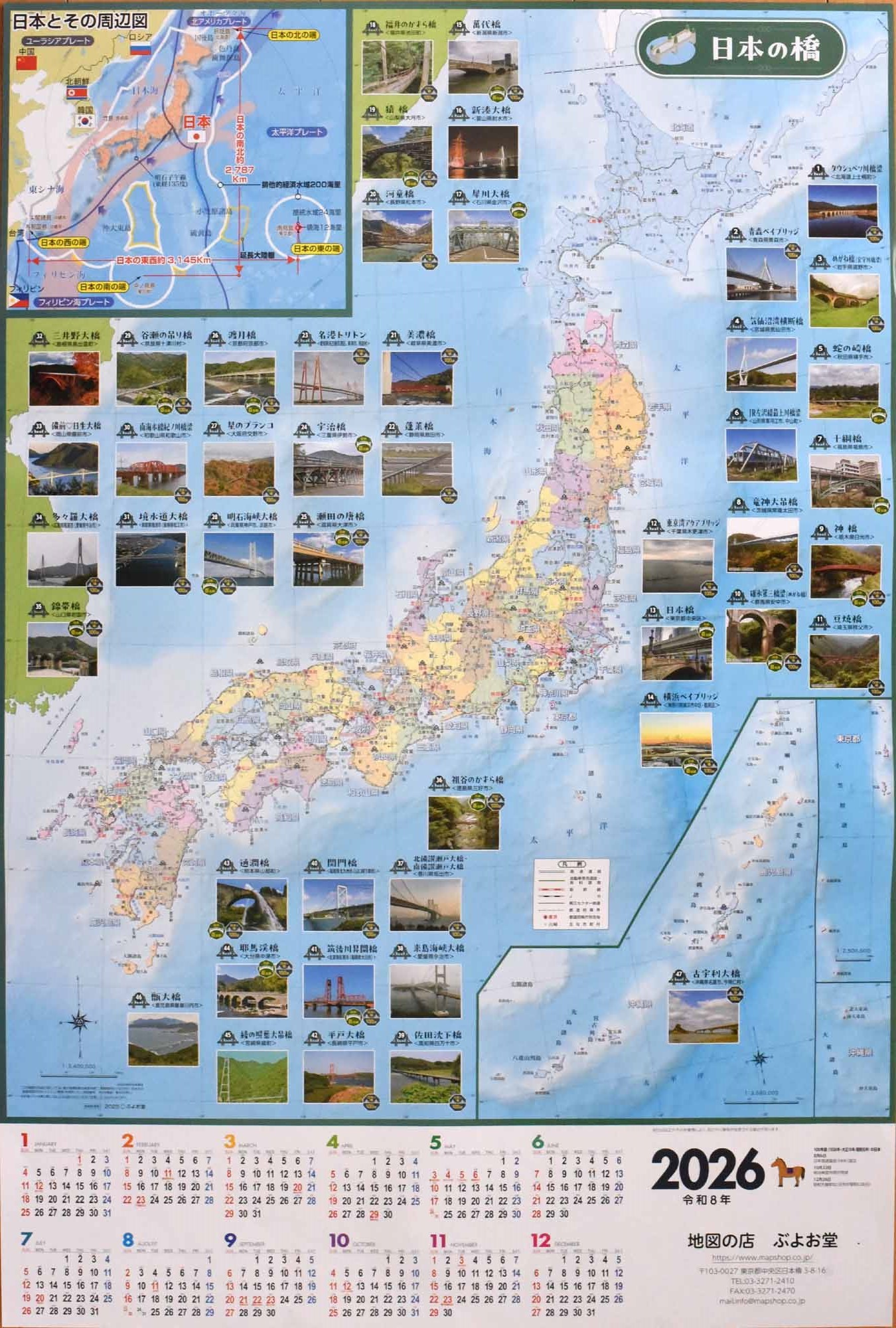 今年のご連絡が遅くなりましたが、以前から、毎年の、世界と日本の「地図カレン