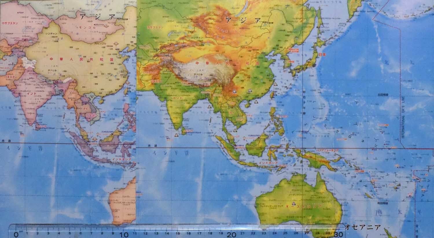 ところでじつは、昨年の版の1回だけですが、世界・日本とも、地形が判る様な精緻